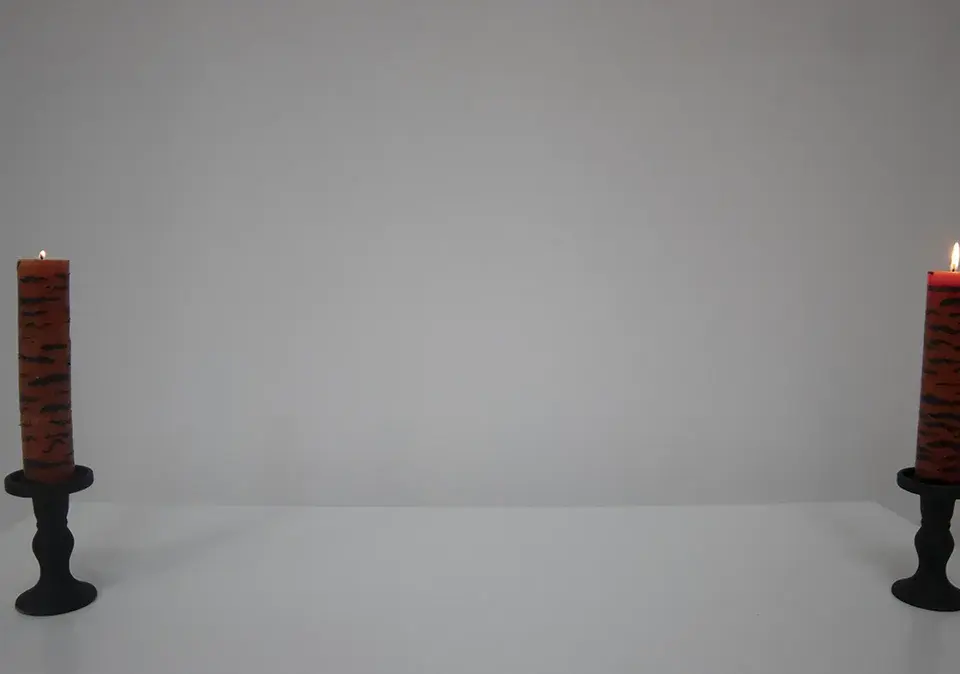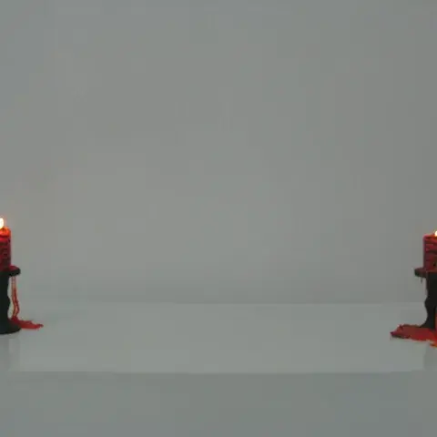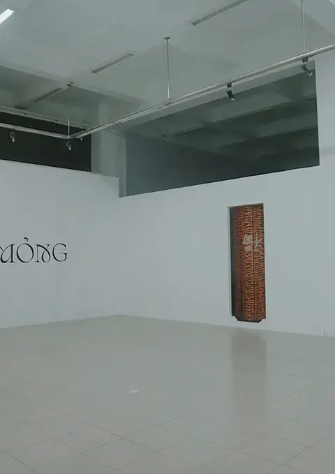 The work consists of two inverted doors, two beaded tiger-skin curtains, the reverse Phuc word in Sino-Vietnamese, an altar in the middle, two tiger-skin candles lit, and Trinh performs weaving one of the two curtains every day during the exhibition.